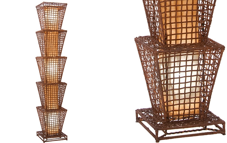 φωτιστικό δαπέδου βέργινο με εσωτερική επένδυση από ύφασμα.