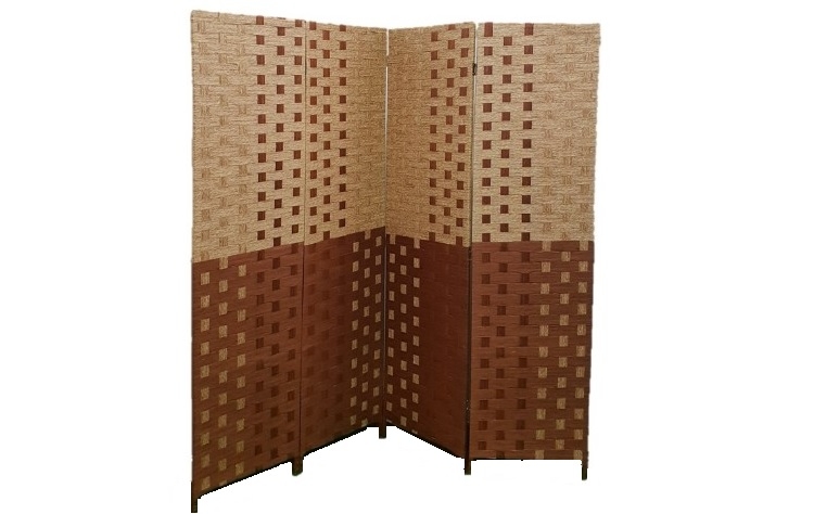 Παραβάν τετράπτυχο πλεκτό ψάθινο δίχρωμο χρώματος
