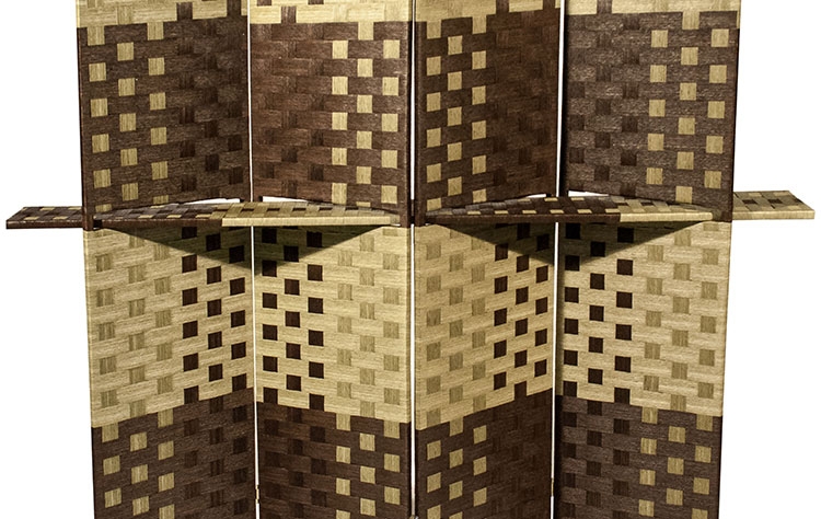 τετράπτυχο πλεκτό ψάθινο, χρώματος λαδί και βέγκε, με ράφι στο