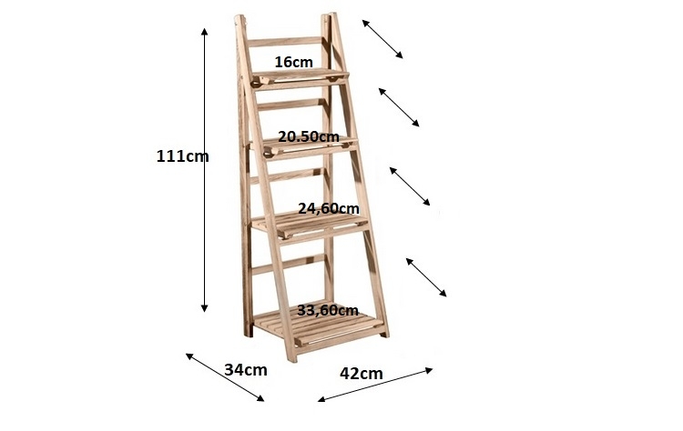 Ξύλινη ραφιέρα σκάλα με 4 ράφια σε ξύλινη απόχρωση.