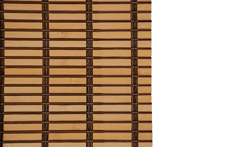 Στόρι roll-up από Bamboo δίχρωμο σε αποχρώσεις φυσικό και καρυδί με μηχανισμό σχοινιού τροχαλία.