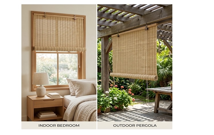 Συνδυάζει άψογα τη φυσική απόχρωση του μπαμπού με τα βαμβακερά νήματα σε ζεστή απόχρωση του καφέ, δίνοντας ένα ιδιαίτερο artisanal στυλ, που θα στολίσει και θα διακοσμήσει κάθε εσωτερικό ή εξωτερικό χώρο, καθώς το κομψό γεωμετρικό μοτίβο του τραβάει το βλέμμα, προσφέροντας παράλληλα πολύ πυκνή κάλυψη που αγγίζει το 90% και το καθιστά ιδανικό για να προσφέρει υψηλή προστασία από τον ήλιο και τα αδιάκριτα βλέμματα.