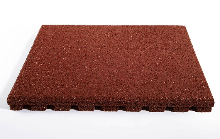 Αντικραδασμικά δάπεδα με επίστρωση 1 εκατοστού από ανακυκλωμένους κόκκους SBR που ικανοποιούν το κανονισμό REACH, ενώ το υπόλοιπο πάχος του πλακιδίου είναι από ανακυκλωμένους κόκκους ελαστικού. Η πάνω επιφάνεια των δαπέδων είναι λεία, πορώδης, και αντιολισθητική, ενώ η κάτω πλευρά τους είναι ειδικά διαμορφωμένη προκειμένου να επιτυγχάνεται η καλύτερη απορροή των υδάτων και να καλύπτουν μέγιστο ύψος ελεύθερης πτώσης ανάλογα με το πάχος τους.