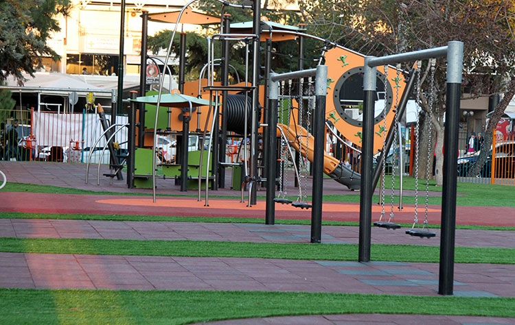 Ειδικές πλάκες δαπέδου ασφαλείας κατασκευασμένες από 90% ανακυκλωμένο ελαστικό και 10% μίγμα πολυουρεθάνης για χώρους όπου απαιτείται προστασία από πτώσεις (παιδικοί σταθμοί, σχολεία, πάρκα, παιδότοποι)