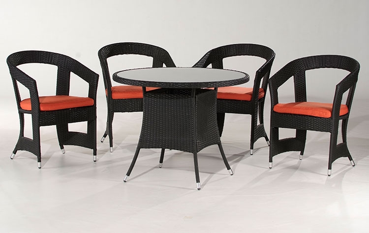 τραπεζαρία 5 τεμάχια αλουμίνιο με WICKER P.V.C σε μαύρο χρώμα με πορτοκαλί