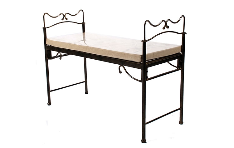 Πάγκος ιματισμού χειροποίητος μεταλλικός δυο θέσεων, χρώματος μπρονζέ αντικέ με διακοσμητικές λεπτομέρειες. *Κατά την φωτογράφιση του προϊόντος μπορεί να εμφανισθούν χρωματικές αποκλίσεις. Εξοπλισμός δωματίου, πάγκοι ιματισμού |