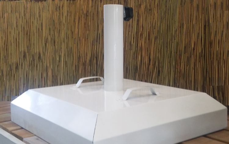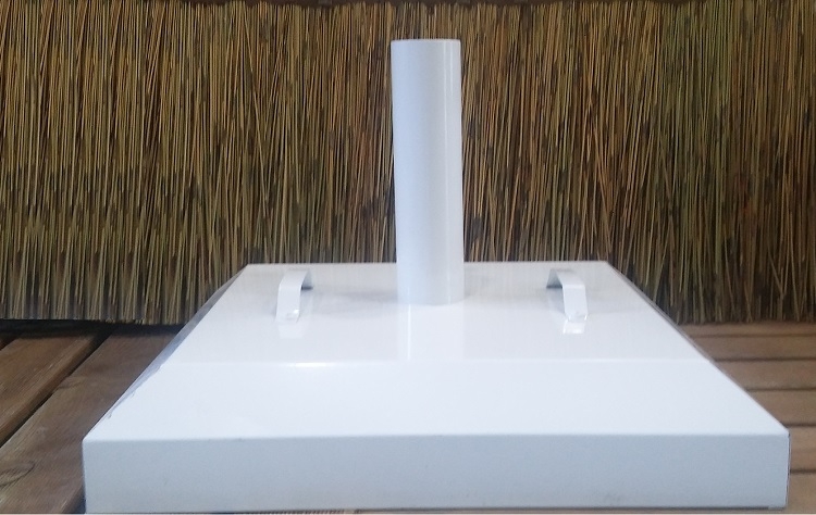 Τετράγωνη βάση oμπρέλας γαλβανιζέ, με ηλεκτροστατική βαφή σε λευκό χρώμα, με χειρολαβές και σωλήνα Φ60 ή Φ70