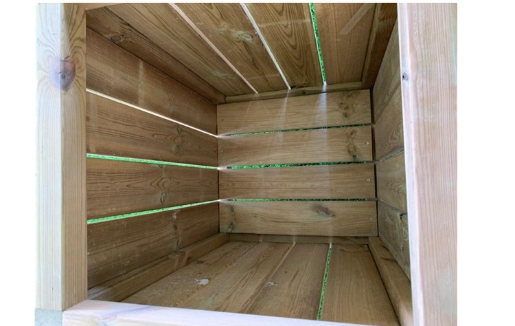 - Κομψή Αισθητική: Το φυσικό φινίρισμα της εμποτισμένης ξυλείας εντάσσει αρμονικά τον κάδο σε περιβάλλοντα όπως κήποι, βεράντες, πάρκα, πισίνες και beach bars.
