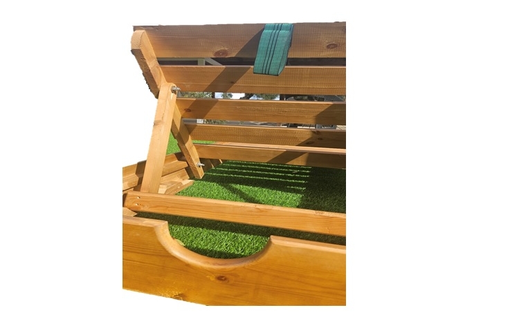 - Βαφή Λούστρου - Καρυδί Μεσαίο: Η ξαπλώστρα έχει περαστεί με ειδική βαφή λούστρου σε ζεστό χρώμα καρυδί μεσαίο. Αυτή η επεξεργασία προσφέρει όχι μόνο ένα κομψό φινίρισμα, αλλά και προστασία από την υγρασία, τον ήλιο εξασφαλίζοντας υψηλή αντοχή στο χρόνο.