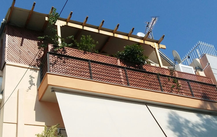 Ξύλινα καφασωτά πάνελ τοποθετηση σε βεράντα. Κάντε κλικ εδώ για να δείτε όλα τα ξύλινα καφασωτά και πάνελ στο ηλεκτρονικό μας κατάστημα. |