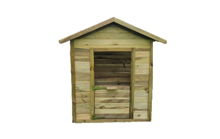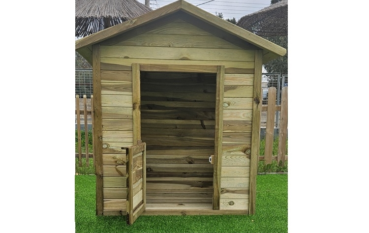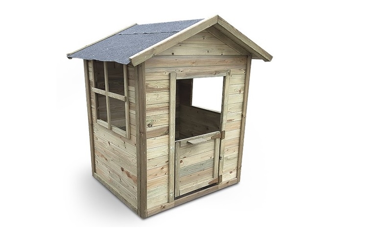 Ξύλινο παιδικό σπίτι με πόρτα και 2 πάραθυρα. Μασίφ ξύλο εμποτισμένης ξυλειας - ανθεκτικό και αρκετά σταθερό. Εξωτερικές διαστάσεις 110x133,5x143(Y)cm , εσωτερικές διαστάσεις πατώματος 103,50cm x 89cm