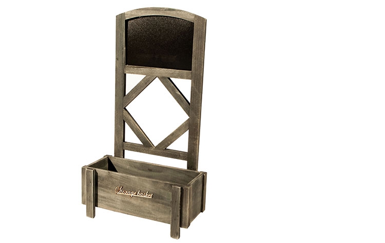 Ζαρντινιέρα παραλληλόγραμμη με βαφή εμποτισμού, ψηλή πλάτη και διακοσμητική επιγραφή.