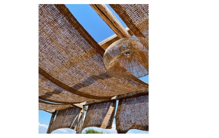 πρώτη ύλη που είναι το σχοινί από ίνες καρύδας δημιουργούν ένα δίχτυ σκίασης