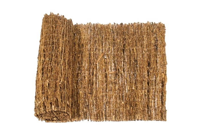 Μια καλαμωτή διαφορετική από τις άλλες, από ολόκληρα κλαδιά bamboo καλαμιού 2,5Kg/m², πλεγμένα με γαλβανισμένο σύρμα ανά 100mm περίπου.