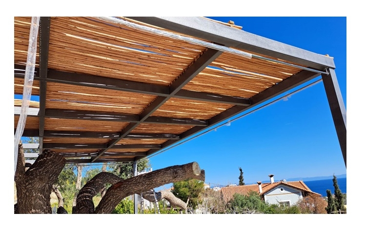 Καλαμωτές για σκίαση, καλαμωτή για περίφραξη μπαλκονιού, καλαμωτή για κατασκευή πέργκολας, καλαμωτές εξωτερικού χώρου, καλαμωτή με σύρμα γαλβανιζέ, καλαμωτή από ξύλινη μασίφ βέργα λεπτοκαρυάς
