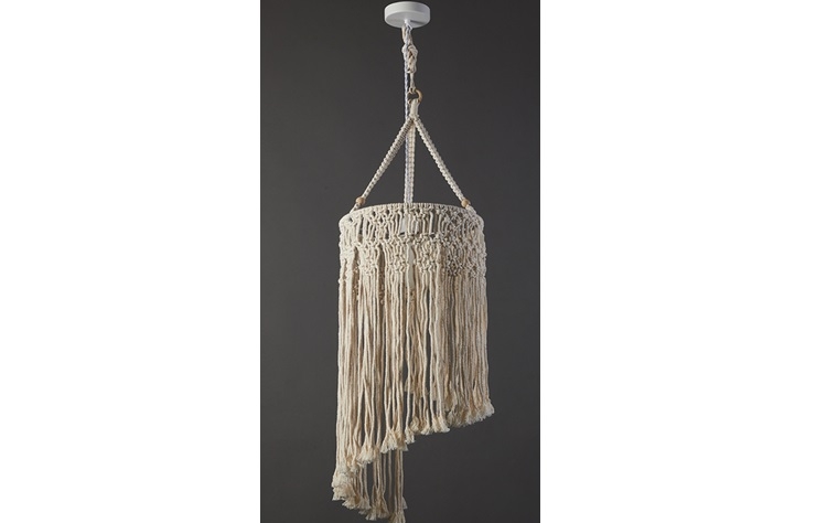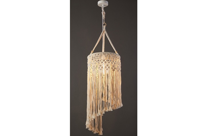 Κρεμαστό φωτιστικό μακραμέ με κρόσια κατάλληλο για εσωτερικό ή εξωτερικό χώρο στεγαζόμενο.