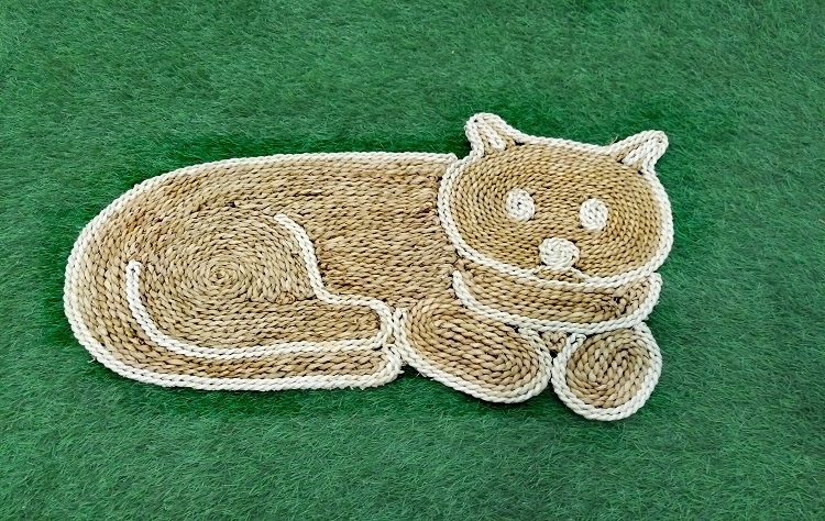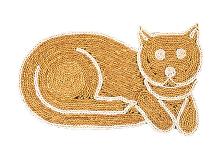 χειροποίητο χαλί σε φυσικό χρώμα σε σχήμα γάτας.