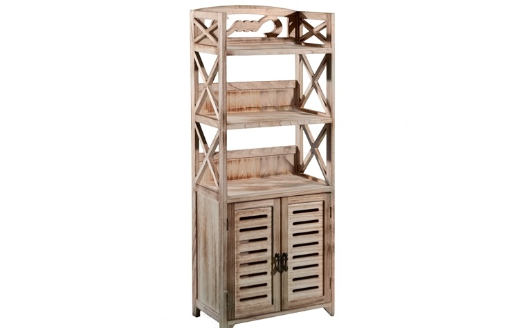 ραφιέρα με 2 ράφια και ντουλάπι στο κάτω μέρος σε ξύλινη απόχρωση.