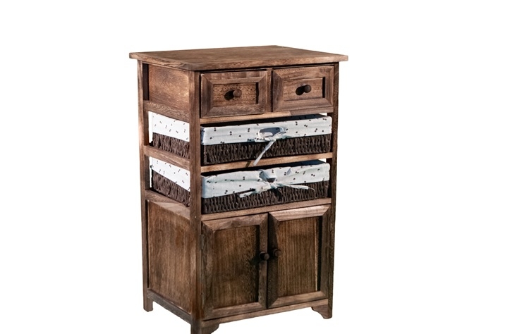 με ξύλινο σκελετό με 2 ξύλινα συρτάρια ντουλάπι σε χρώμα καφέ και 2 ψάθινα