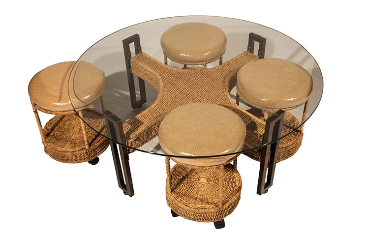 ΚΑΘΙΣΤΙΚΟ ΧΕΙΡΟΠΟΙΗΤΟ ΣΕΤ 5ΤΜΧ ΤΡΑΠΕΖΙ O120x45cm ΚΑΙ 4 ΣΚΑΜΠΩ ΜΕ ΡΟΔΕΣ O38x(Υ)44cm