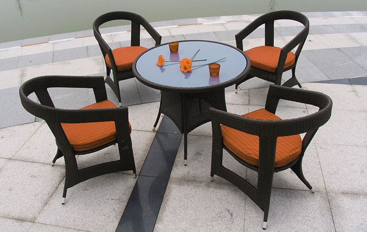τραπεζαρία 5 τεμάχια αλουμίνιο με WICKER P.V.C σε μαύρο χρώμα με πορτοκαλί