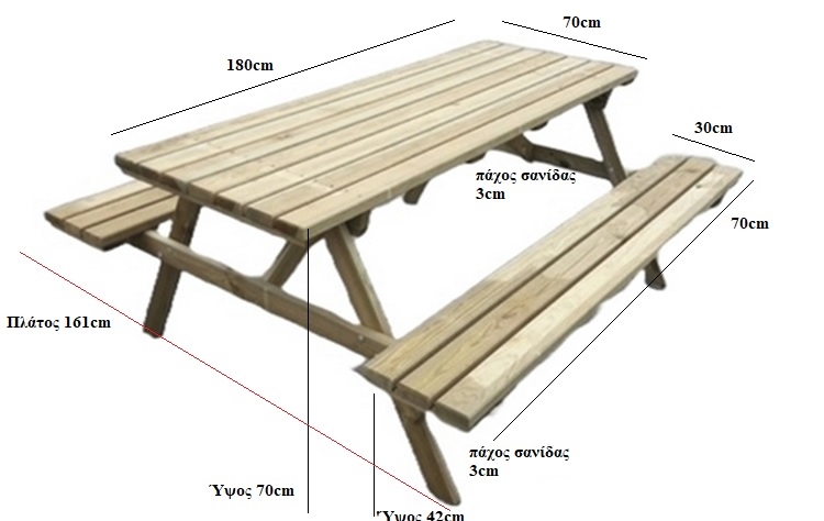 Πάγκος εξοχής (Πικ νικ) μασίφ με δοκό εμποτισμένης ξυλείας 3,0x9,0cm.