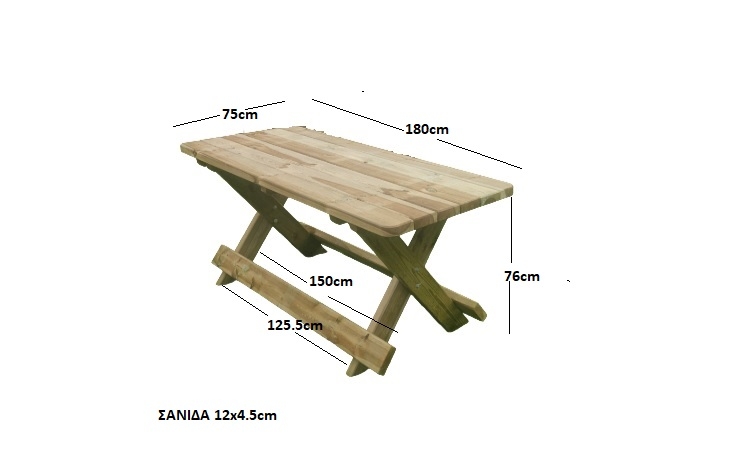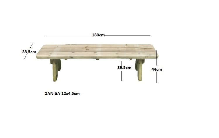 - Διαστάσεις : Τραπέζι : 180x75x76cm / Παγκάκι με πλάτη : 180x65x89cm / Παγκάκι (χωρίς πλάτη) : 180x38x44cm