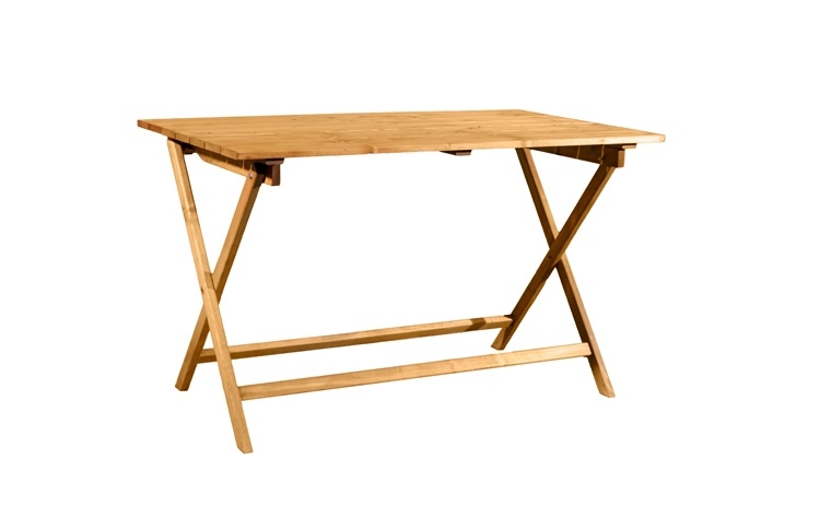 Πτυσσόμενο τραπέζι ξύλινο εξωτερικού χώρου, με βαφή εμποτισμού σε μελί χρώμα.