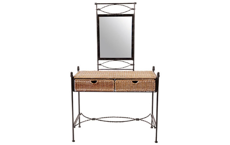 τουαλέτας χειροποίητη από μασίφ μέταλλο χρώματος μπρονζέ με σχοινί και δύο