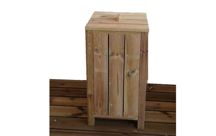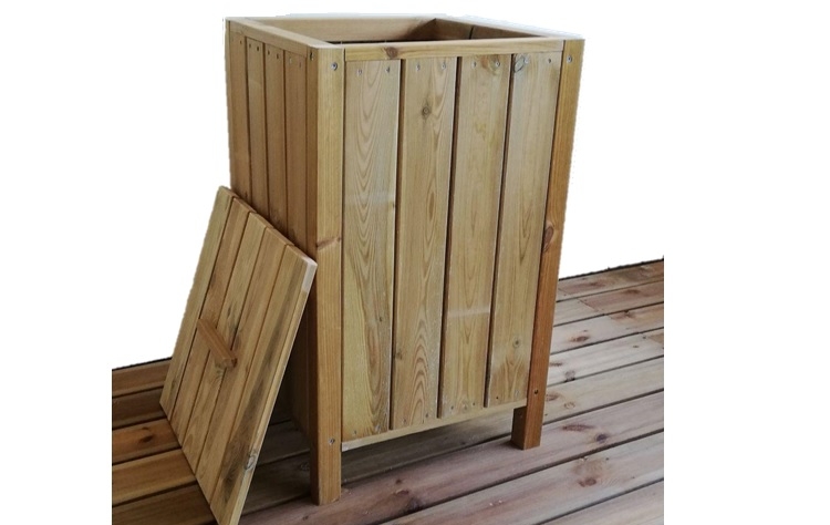 - Κομψή Αισθητική: Το φυσικό φινίρισμα της εμποτισμένης ξυλείας εντάσσει αρμονικά τον κάδο σε περιβάλλοντα όπως κήποι, βεράντες, πάρκα, πισίνες και beach bars.