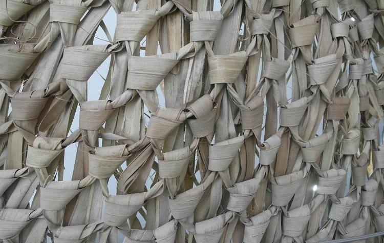 - Αυθεντικό Πλεκτό Φοινικόφυλλο: Το σκίαστρο είναι κατασκευασμένο από πλεκτό φοινικόφυλλο, ένα υλικό που προσφέρει μια ανάλαφρη, νησιώτικη υφή και εξαιρετική φυσική σκίαση. Η πλέξη επιτρέπει στον αέρα να περνάει απαλά, διατηρώντας τη δροσιά, ενώ η εμφάνισή του αποπνέει πολυτέλεια και φινέτσα.