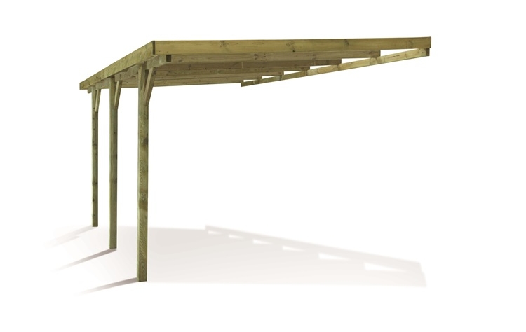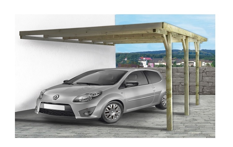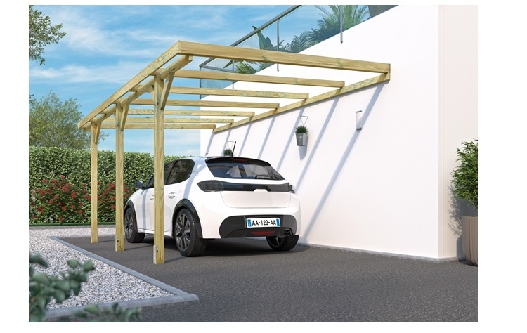 Πέργκολα γκαράζ στήριξης από τοίχο με κολώνες 9x9cm και 300x524x(Υ)257cm εμποτισμένης ξυλίνης.