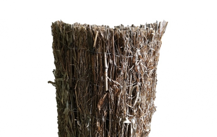 Μια καλαμωτή διαφορετική από τις άλλες, από ολόκληρα κλαδιά bamboo καλαμιού 2,5Kg/m², πλεγμένα με γαλβανισμένο σύρμα ανά 100mm περίπου.
