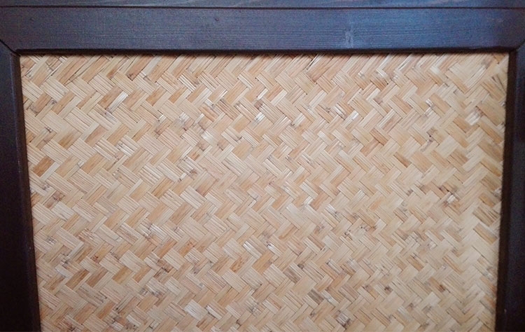 απολύτως χειροποίητη, πλεγμένη από λεπτές βέργες κίτρινου καλαμιού σε πλέξη