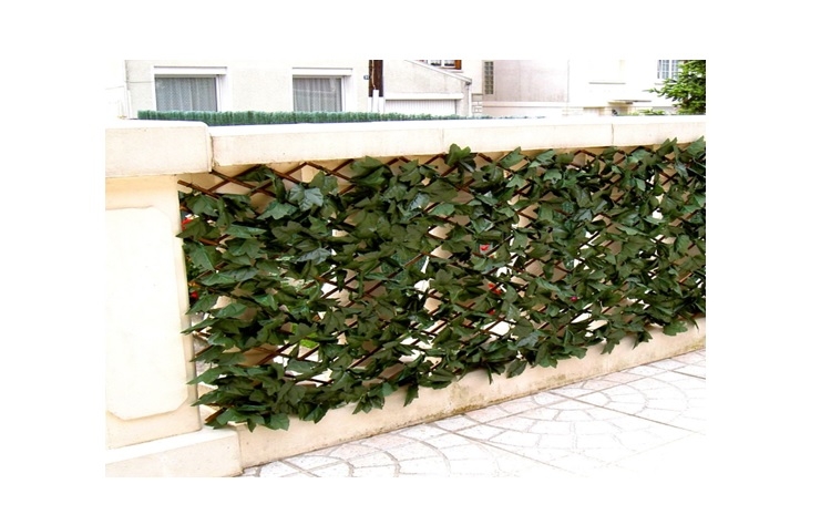 φυλλωσιά ίδια με φυσική, δίχρωμη, πλεγμένη πάνω σε ξύλινο πτυσσόμενο καφασωτό.
